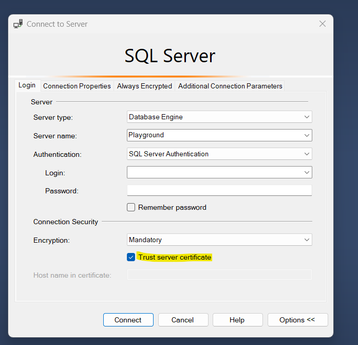 This message means that your machine does not trust the SSL certificate used by the SQL Server. In some (often secure) environments, servers are often set up with self-signed or internal certificates. So when using dbatools, it tries to connect over TLS/SSL, hence the error. I like to think of it like the popup here where we have to select “trust server certificate” but isnt conifgured in powershell: